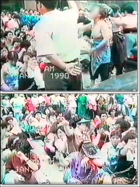 진압에 맞서 옷을 벗고 저항한 여성 노점상들. 몸을 보인다는 부끄러움보다, 노점상이란 삶이 준 모욕과 울분이 더 크고 깊었다. 노점상들은 쇠사슬로 서로의 몸을 엮어 버텼다. 알몸으로 구호를 외치는 사람들도 울고, 차마 그걸 볼 수 없어 고개 숙인 사람들도 모두 울었다.