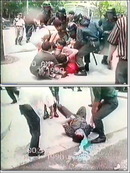 그날도 서울 도심에서 노점상 집회를 마치고 행진에 나선 때였다. 당시 문화국장을 맡고 있던 유희는 메가폰을 들고 앞에서 구호를 외치고 있었다. 그 순간 경찰의 진압이 시작됐다. 전경들은 노점상들을 향해 곤봉을 휘두르고 발길질을 날렸다. 여성 노점상들의 머리채를 잡아끌고, 쓰러진 노점상의 사지를 들어 연행했다.