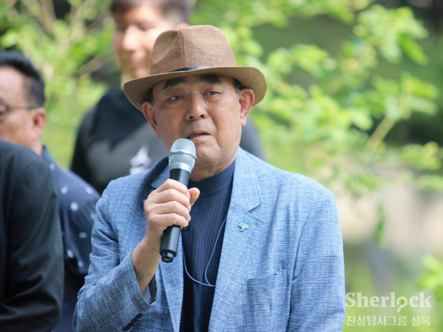 “늘 이 자리에서 사회를 봤던 유희가 지금 수배 중에 있다. 현 정권은 아무 죄 없는 사람들을 이런 굴레에 가둬 놓고 있다.”
