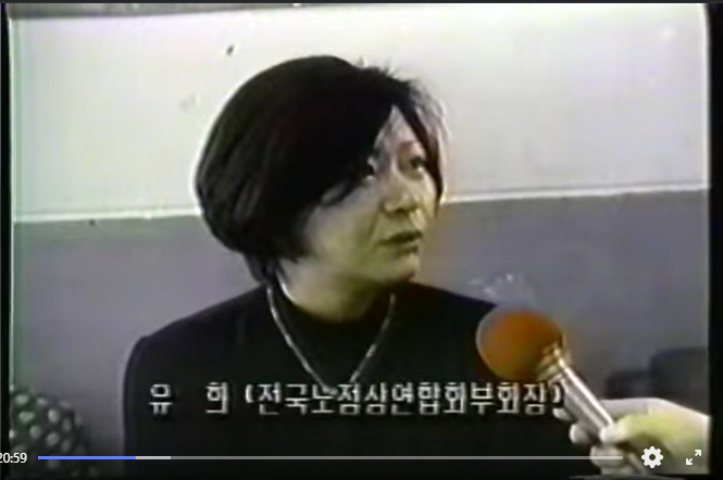 “한번은 노점상 집회 할 때, 저기 어떤 여자가 옷으로 칭칭 싸매고 왔어. 옆에다가 저 사람 누구냐 물었더니, 세상에, 유희라는 거야. 암이 걸렸다는 거야. 이따 가봐야지, 했는데 나중에 보니까 없어. 사람들한테 물어보니까, 먼저 갔대. 그게 마지막…. 그때 유희라는 소리를 듣고 내가 뛰쳐나갔어야 하는데 그게 참 후회돼. 손 못 잡아주고 얘기 못해준 게….”(노)