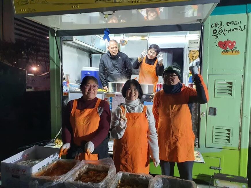 “어느 날 갑자기 밥차를 하겠다는 거야. 이게 쉬운 게 아니잖아. 내가 하지 말라 그랬어요. 근데 뭐 말릴 수 있는 사람이 아니잖아. 정 그러면 한번 해봐라 했지만, 솔직히 금방 포기할 줄 알았어. 아, 근데 해내더라고. 정말 대단한 끈기고, 유희 아니면 못하는 일이지.”(조)