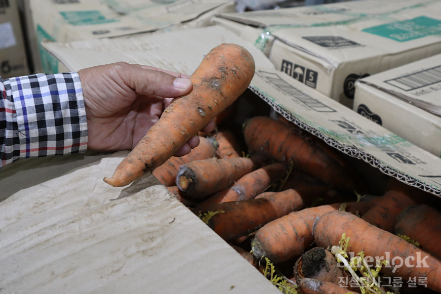 ‘못난이 농산물’로 싸게 판매하기도 하지만, 벌레 먹거나 너무 못생긴 농산물은 아예 상품으로 못 나가요. 지금도 당근이 창고에 한 50박스 있어요. 그냥 버려야 해.”