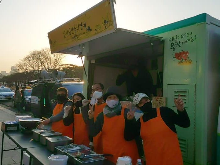 재개발지구 빌라에 살던 시절 주방 하수도가 고장 났다. 300명분 음식 재료를 주방에서 욕실로, 욕실에서 주방으로 들고 나르면서 밥을 한 날도 있었다. 그렇게 고생해서 지은 밥도, 현장에서 나눌 때는 그저 “맛있게 드세요!” 웃으며 외칠 뿐이었다.