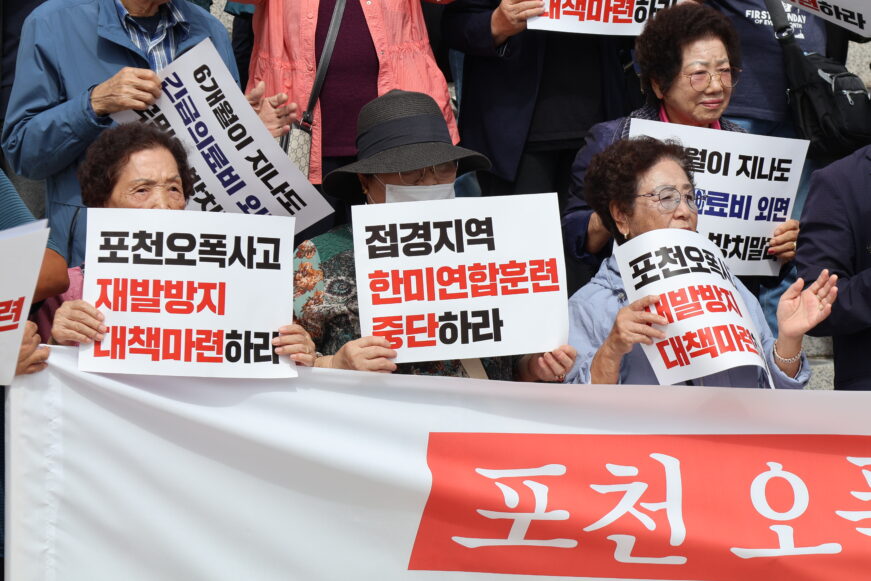 국정감사를 앞둔 지난달 22일, 피해 주민들이 70여 명이 직접 국회를 찾아 호소한 바 있다. 이들은 정부의 책임 있는 사과와 재발 방지 대책을 촉구했다. 복구와 보상, 지원 문제 해결을 촉구함과 동시에, “국민의 생명을 지키지 못하는 훈련은 결코 국방이 아니”라며 “국민을 지키지 않고 죽음으로 내모는 훈련은 즉시 중단해야 한다”고 주장하기도 했다.