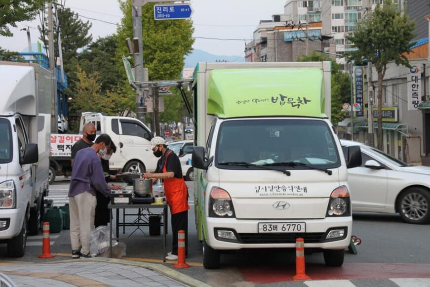 그 꾸준함이 두 사람을 가까워지게 했다. 유희에게 든든한 ‘멤버’들과 밥차가 생기고, ‘십시일반 음식연대 밥묵차’라는 멋진 이름이 생긴 뒤에도 두 사람은 늘 현장에서 만났다.