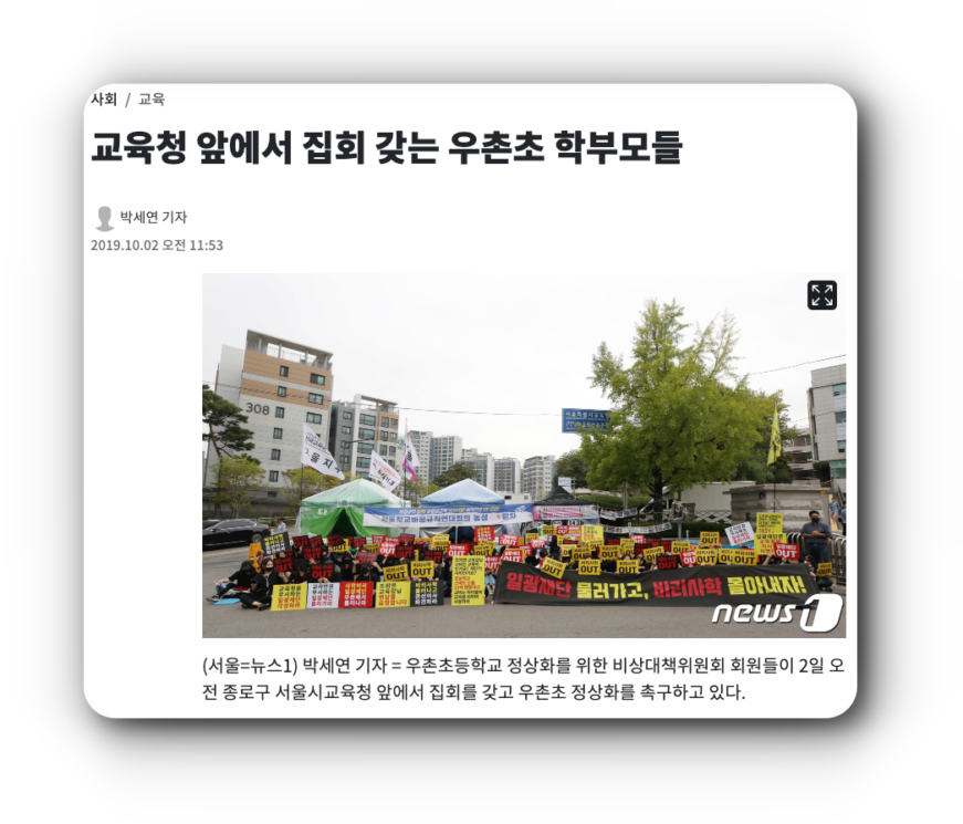 과거에도 우촌초 학부모들은 탄원서를 제출한 바 있다. 2020년 8월 서울시교육청이 일광학원 구 재단 이사회의 취임승인을 전부 취소하기로 결정했을 때다. 당시 구 재단 이사회는 교육청의 결정에 불복해 행정소송을 제기했다.
