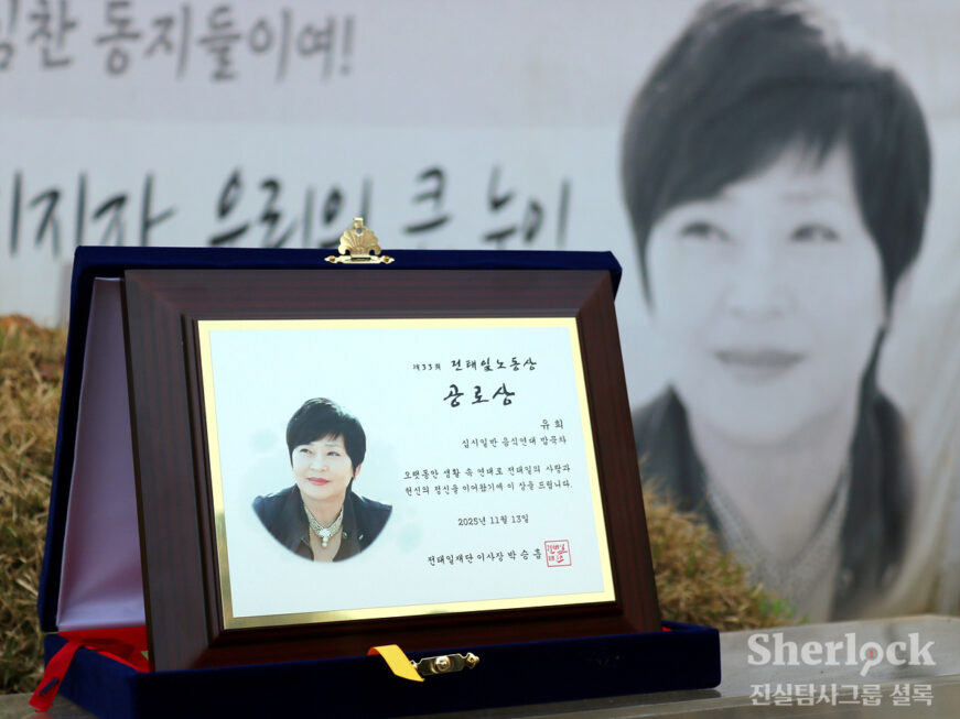 지난해 11월 13일 전태일 열사의 기일에, 경기 남양주시 모란공원묘지 민족민주열사묘역 내 전태일 묘소 앞에서 시상식이 열렸습니다. 지난해 여름 인터뷰를 통해 제게 기억을 나눠줬던 ‘유희의 사람들’도 함께했습니다. 인터뷰 이후 서너 달 만에 다시 만나는 얼굴들. 반가워 손을 잡고 웃다가, 문득 북받쳐 눈물도 훔쳤습니다.