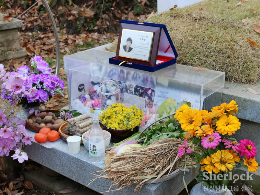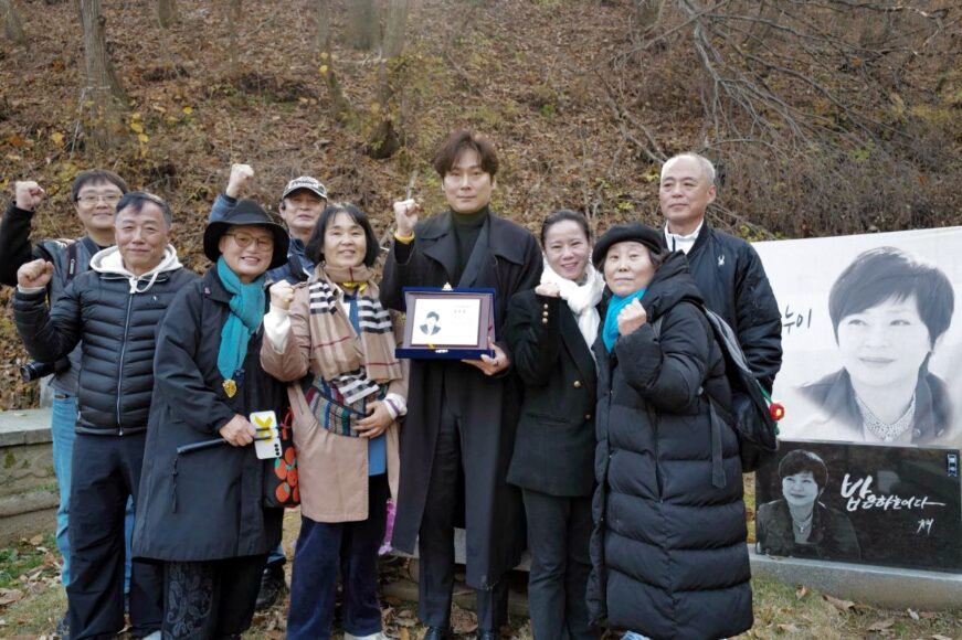 ‘유희를 닮은 사람들’이 그녀의 묘소 앞에서 상패를 들고 사진을 찍었습니다. 몇 달 전 저 혼자 상상하던 장면이 실제로 눈앞에 펼쳐졌습니다. 이번엔 저도 그들 사이에 같이 섰습니다.