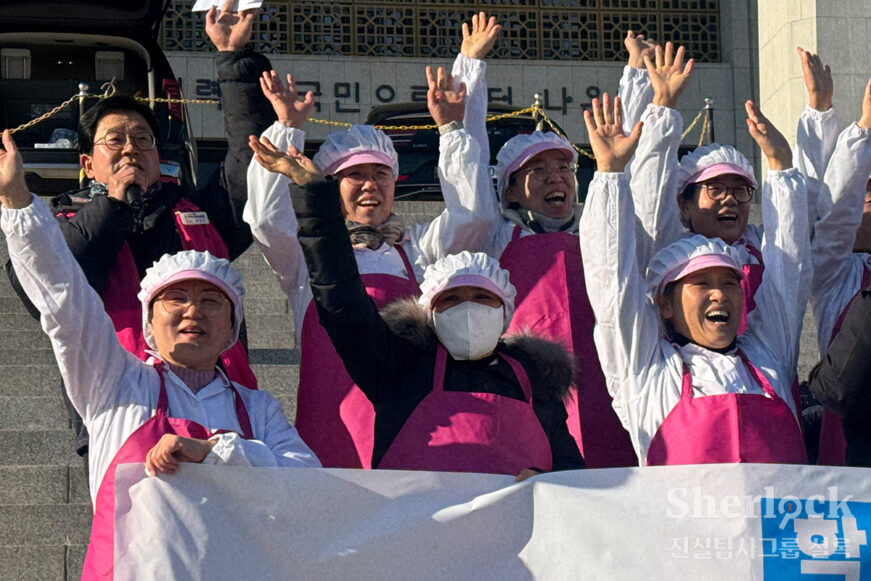 ‘그림자 노동’을 하던 조리사들에게 비로소 ‘학교급식종사자’라는 이름이 생겼다. 폐암으로 세상을 떠난 15명의 동료가 떠올랐던 걸까. 지금도 병마와 싸우고 있는 동지들이 눈에 밟혔던 걸까. 쉬이 눈물을 그치지 못했다.