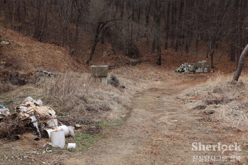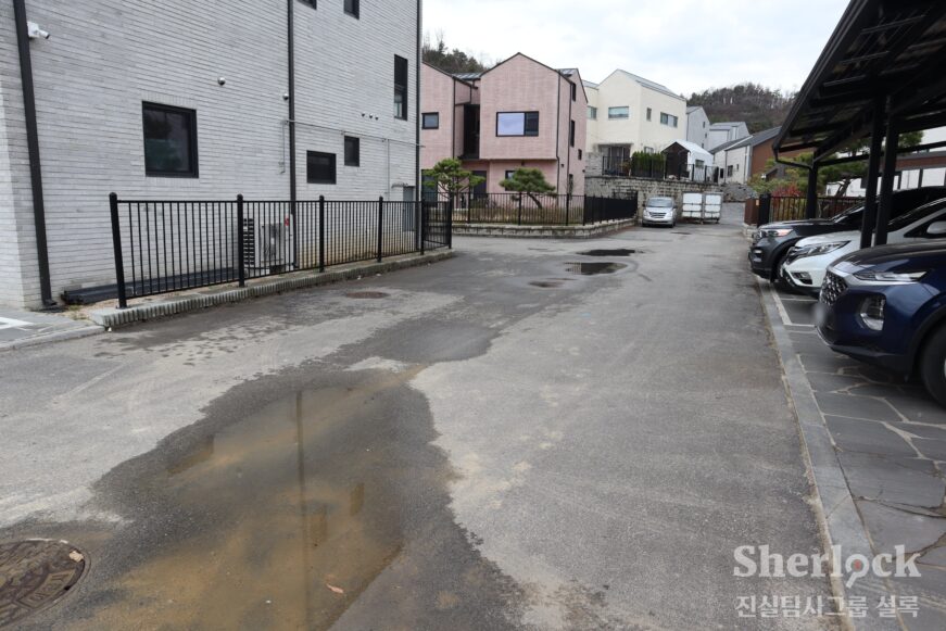 전원주택 단지 모퉁이에 비좁게 자리한 땅. 허리 높이의 초록색 펜스가 기자를 막아선다. 펜스에 걸린 현수막엔 ‘개인사유지 통행금지’ 문구가 빨간 글씨로 쓰여 있었다.