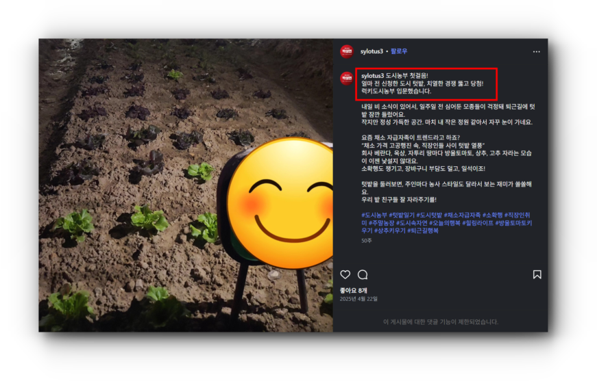 “도시농부 첫걸음! 얼마 전 신청한 도시 텃밭, 치열한 경쟁 뚫고 당첨! 럭키도시농부 입문했습니다.”