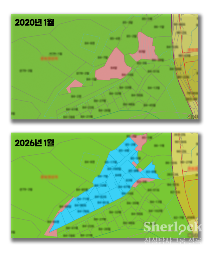 그 결과, 박 의원 측이 일대 농지 총 4114평(1만 3577㎡)를 택지개발 사업에 활용한 사실을 확인했다. “농업경영”을 목적으로 취득한 농지를 개발해서 대규모 주택단지를 만드는 데에는 불과 5년이 걸리지 않았다.