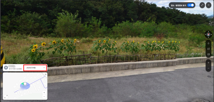 2020년 9월에 찍힌 사진에도 농지 상태는 크게 다르지 않았다. 농지 일부에 두둑을 만들어둔 밭이 작게 있었지만, 그곳에도 작물은 보이지 않았다. 해바라기 꽃만 도로를 따라 한 줄로 볼품없이 심어져 있었다.