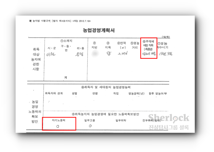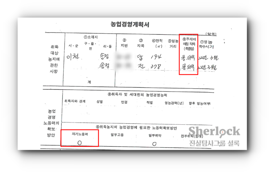 진실탐사그룹 셜록은 박 의원이 농지를 취득할 당시 지자체에 제출한 ‘농업경영계획서’를 입수했다.
